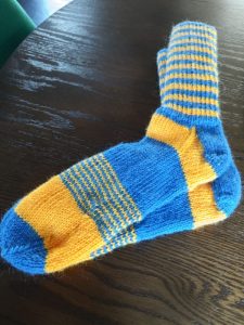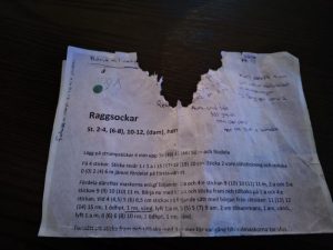 Ytterligare ett par sockor, ganska mycket Sverige inspirerade som yngste sonen beställde är klara. Nu är det dags att göra ett par till mannen. Därefter har jag ett par som ska göras till äldsta barnbarnet och sen är det nog tid att göra annat. Mönstret är rätt slitet och blev inte bättre när Wilja kom över det…..