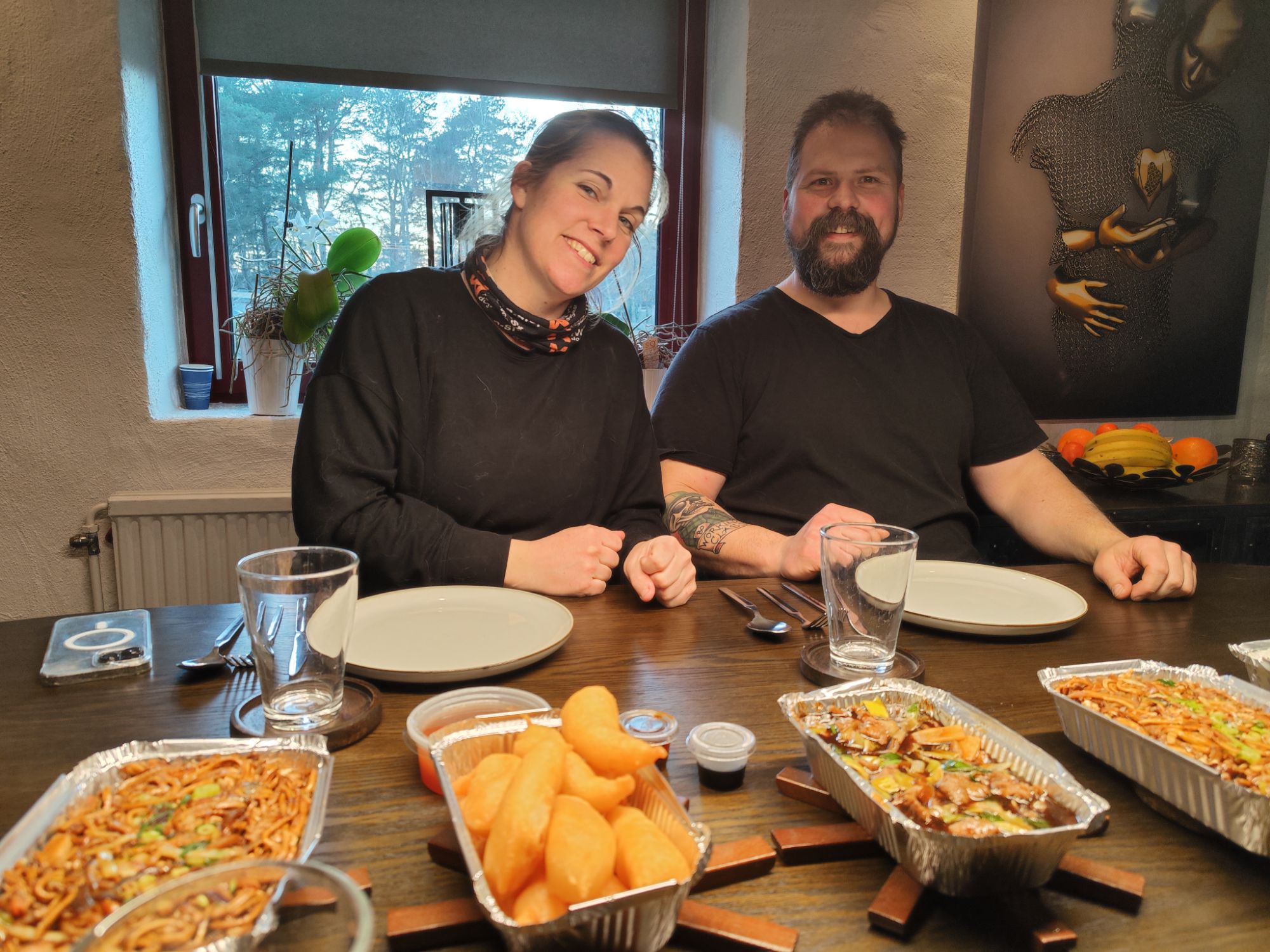 Senare eftermiddag så dyker vår dotter med pojkvän helt överraskande upp och undrar vad dem får till middag. Det slutade med en trevlig kväll och kinamat! Så kul!